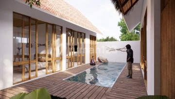 06-340/Bali Vila tropis di Dharmawangsa, Kuta Selatan, Bali 10 menit ke Bukit Pandawa Golf, Gunung Payung & Pantai Pandawa. Lingkungan vila Luas Tanah : 220 m² Luas Bangunan : 100 m² 2 kamar tidur utama dengan kamar mandi dalam Ukuran Kolam Renang : 2,5 × 8 m Listrik : 5.500 watt Furnish : Peralatan Dapur Modena 2 AC + pemanas air dan mesin cuci. Serah terima Oktober 2025 Shm Harga Rp 3,050 Miliar nego