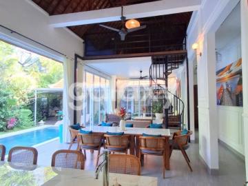 DIJUAL VILLA KERTA RAHAYU UMALAS BADUNG, BALI DIJUAL Rp. 9.2 M LT : 400 M2 LB : 210 M2 SHM IMB HADAP SELATAN VILLA 1 LANTAI + MEZANIN FULL FURNISHED SWIMMING POOL R. TAMU DAPUR KAMAR TIDUR KAMAR MANDI LISTRIK 7.700 WATT AIR SUMUR BOR PARKIR AREA AKSES JALAN 4 METER