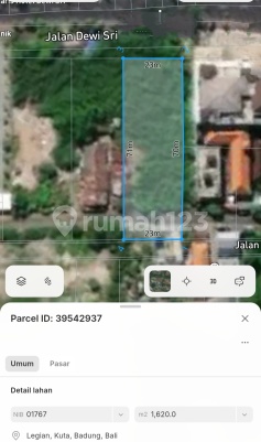 DIJUAL SEBIDANG TANAH KOSONG KOMERSIL DI JALAN RAYA DEWI SRI LEGIAN KUTA BADUNG. *Luas tanah 1620m2 *Lebar depan 23 meter *SHM (hak milik) *Zona perdagangan jasa *Lokasi dapat 2 jalan (depan+belakang) *Akses pinggir jalan utama Harga 4 miliar/are