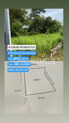 Di jual tanah di jl gunung payung kutuh bali Luas 285 m2 / 2,85 are Hak milik Zona kuning 8 menit ke pantai gunung payung 30 menit ke airport 40 menit ke seminyak Harga : 350 juta / are smida Maps ********