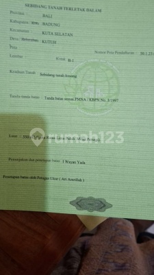 Dijual tanah lokasi strategis depan gate pantai tanah barak Kutuh Kuta Selatan Badung Bali jalan karang pandawa luas 550m² atau 5,50 are sertifikat hak milik itr pink zona pariwisata akses jalan 7 meter aspal hadap timur ukuran lebar depan 20 meter Panjang kedalaman Sisi selatan 27,5 meter panjang kedalaman sisi Utara 25 meter lebar sisi belakang 23 meter harga 775 juta per are nego