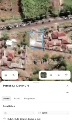 Dijual : Tanah Sertifikat : SHM (freehold) Alamat : Jalan Nusa Dua Selatan / Alas Arum, Kutuh Luas tanah : 5,2 are / 520 M2 Zona ITR : Pink (parawisata) Harga tanah per-meter : Rp. 13.000.000,- Harga tanah per-are : Rp. 1.300.000.xxx Harga keseluruhan : Rp. 676000xxxxnego sampai deal) Aksesbilitas. - 3 menit ke pantai Gunung Payung - 7 menit ke pantai Pandawa - 9 menit ke pantai Greenbowl - 10 menit ke pantai Melasti
