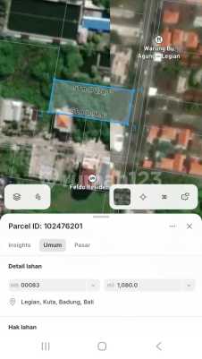 - lokasi jalan Pendawa 1, Legian Bali - luas tanah 1080 m2 Dimensi lebar 22 meter dan panjang 51 meter - hadap selatan - akses 7 meter - zona campuran merah dan kuning Dijual 1,9 M/are