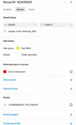 Di Jual Tanah Yang Berlokasi Jalan Pandawa Dewi Sri,Legian,Kuta Lokasi Sangat Strategis Jika Di Bangun Guest House,Villa,Dll Luas tanah 1080m2 Dimensi 22X51 meter SHM ZONA CAMPURAN Akses jalan LC 8 meter Harga Rp 19 Juta/m2 Atau Rp 1,9 Miliyar/are Don58
