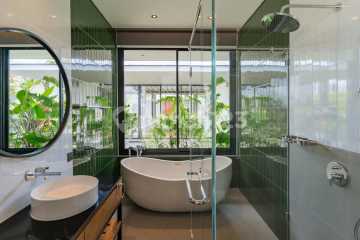 •Modern tropical design. •4 spacious bedrooms, 4.5 bathrooms. •490 m2 land size and 428 m2 building size. •Private access road in quiet neighbourhood. •High standard and spec building quality with spacious rooftops with amazing views of pandan-rice fields, volcanoes, sunrise and sunset. •Swimming pool (14 x 3 metres). •Fully furnished with two fully equipped kitchens. •Fourth bedroom, second kitchen and bathroom can be used as a self-contained unit / separate rental accommodation. •Prime location - 5 minutes to Pererenan Beach, surrounded by cafes, restaurants, supermarkets, fitness centres and sport clubs. •Equipped with a pre-installed state of the art water filter system. •Leasehold until 1 June 2057 with 30 years extension option.