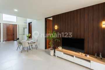 Nestled in the serene surroundings of Dalung, Mengwi, this modern complex of six two-storey townhouses offers a perfect blend of luxury and tranquility. Designed with natural tones and elegant finishes, each home features a private swimming pool adorned with exotic plants, creating a peaceful retreat. The thoughtfully designed layout includes two spacious bedrooms, each with an en-suite bathroom, an office space, a stylish kitchen, and an inviting living room. Expansive panoramic windows and a private balcony provide breathtaking views of the lush rice terraces, enhancing the sense of harmony with nature. Transparent fences add a touch of sophistication while maintaining privacy and openness. The entire complex embodies the relaxed yet refined Bali lifestyle, offering residents exclusive access to a gated community with parking and a beautifully designed lounge area. Just 15 minutes from the beach, this property provides the perfect balance between convenience and a secluded tropical escape. With a living area of 131 sqm, the townhouse falls under yellow zoning and comes with a 28-year LEASEHOLD until November 30, 2052. Fully furnished and equipped with high-end finishes, furniture, and appliances, this home is ready to welcome you into a world of comfort and elegance.