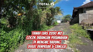 Dijual tanah cocok buat kavlingan perumahan di Mengwi, Badung, msh dekat ke Canggu. Lokasi strategis : 12 menit ke Alas Kedaton 14 menit ke RS Mangusada 26 menit ke Denpasar 35 menit ke Canggu 35 menit ke Pantai Kedungu 36 menit ke Tanah Lot 38 menit ke Central Ubud Luas total 2280 m2 atau 22,8 are SHM Aspek ITR kuning pemukiman Posisi hoek dapat 2 jalan Ukuran sekitar 38 x 60 m Dekat jalan utama Raya Denpasar Singaraja. Akses mudah dan jalan lebar. Dapat bonus bangunan rumah lama msh bisa diperbaiki dan dihuni. Harga hanya Rp 3,5 juta/m2 atau Rp 350 juta/are Nego sampai Deal !!! ******** Keyword : Kavling mengwi Tanah mengwi Mengwi Dekat canggu Dekat denpasar Hashtag : #kavlingmengwi #tanahmengwi #mengwi #lahanmengwi #jualkavling #dekatcanggu #dekatdenpasar #canggu #totalproperty #totalpropertybali