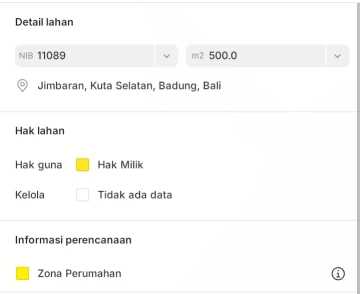 Dijual Tanah di Jimbaran Bawah 150 Meter dari Jalan Utama Bypass Ngurah Rai Lokasi: Mumbul, Jimbaran, Kuta Selatan, Badung, Bali Harga hanya 900 juta/100 m², nego halus Spesifikasi: Luas tanah 500m² Lebar depan 29 meter Sertifikat Hak milik Zona kuning Posisi Hook 150 meter dari jalan bypass ngurah rai Kontur tanah datar siap bangun Akses jalan sangat lancar Hadap timur dan utara Dapat 2 jalan depan dan samping Jaringan Listrik, PDAM, PLN, Internet tinggal sambung Lokasi strategis: 9 menit ke gerbang tol Nusa Dua 12 menit ke pantai jimbaran 14 menit ke gerbang tol Ngurai Rai 15 menit ke pantai Nusa Dua 19 menit ke Bandara I Gusti Ngurah Rai 20 menit ke pantai Kuta 40 menit ke sanur 54 menit ke Canggu 1 jam 28 menit ke pasar seni Ubud