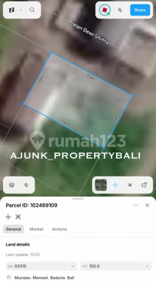 Dijual Tanah lokasi area Munggu - Pemaron, Badung Bali Lingkungan vila, cocok untuk tempat tinggal atau investasi **Detail : - Luas Tanah 150 m2 - Dimensi Tanah 10x15 - Zona Kuning - Permukiman - Posisi Tanah Hook - Hadap Timur dan Utara - Akses Jln 6 meter , bisa diakses dari 2 jalan - SHM