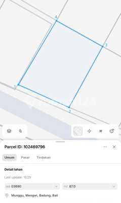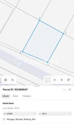 Tanah Siap Bangun Villa Strategis Premium Zona Kuning Munggu 2801xxxxNO.318) (@Egy) Detail Property Dijual : Tanah di Munggu, Canggu Provinsi : Bali Kota : Badung Area : Munggu Lebar Jalan : 5 meter Luas Tanah : 167 m² Air : Ada Daya Listrik : Ada Legalitas : SHM, Zona Kuning Perumahan Hadap : Selatan Akses Jalan : Dua arah Lingkungan : Lingkungan villa, bersih View : View terbuka dari sisi pojok selatan Keutamaan - Luasan kecil ideal untuk bangun villa - Zona kuning kawasan perumahan - Lingkungan villa yang tenang dan bersih - Posisi pojok dengan potensi view Harga Rp 1.900.000.xxx Nego halus