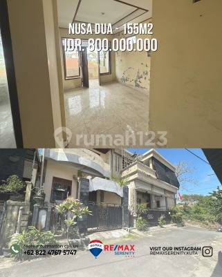 Spesifikasi : - Dimensi 5 x 16 - Luas Tanah 90m2 - Luas Bangunan 155m2 - 5 Kamar Tidur - 3 Kamar Mandi - Dapur - Ruang Tamu - Teras - Balkon - Listrik token - Air PDAM Selling Point: 10 menit Pantai Gunung Payung 13 menit ITDC Nusa dua 15 menit GWK Harga 800jt Nego Cash/Kredit
