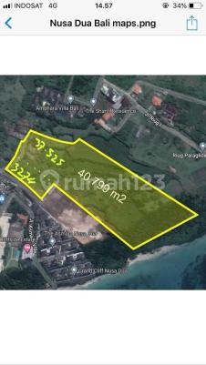 FOR SALE TANAH LOS TEBING LANDAI DENGAN PASIR PUTIH DI PANTAI SAWANGAN NUSA DUA BALI DENGAN LINGKUNGAN HOTEL BINTANG 5 DAN VILLA LUXURY. ✓Luas tanah : 4.08 Hektar ✓Lebar depan tebing tanah : -/+ 160 Meter ✓Kultur tanah datar dan siap bangun ✓2 SHM Hak Milik / FREEHOLD ✓ITR Zona Akomodasi pariwisata ✓Jln Masuk Lokasi 5 meter Aspal ✓ Harga Jual 1,6 Milyar / are. ✓ Harga sewa 40 juta/ are/ tahun. ✓Lokasi tanah SAWANGAN BEACH FRONT PASIR PUTIH NUSA DUA Badung Bali Dan Area Villa Mewah Dan Hotel Bintang 5.