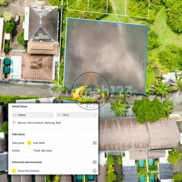 Berlokasi di seberang Taman Dharmawangsa Suite & Madawa Resto Nusa Dua. Lahan multi fungsi utk usaha & villa Detail : - Luas tanah 775 m² - SHM - ITR Pemukiman - Lebar akses 7 m - Jalur air & listrik tersedia - Posisi Hook Harga : Rp. 800 Juta / are / 100 m² Negotiable.