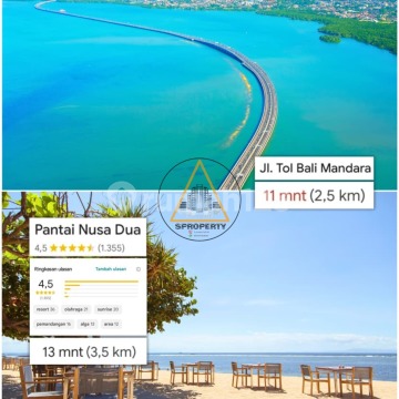 Tanah kavling eksklusif di Nusa Dua ini menawarkan kombinasi langka antara nilai investasi tinggi dan estetika alam yang memukau, di mana Anda bisa langsung menikmati view panorama laut biru dan kemegahan jalan tol di atas air langsung dari titik berdiri di atas lahan - Luas tanah total : 1.745 m² - Bisa ambil : 795 m² / 950 m² - SHM - ITR Permukiman (Kuning) - Lebar akses 4-4.5 m Harga : Rp.500Jt / are / 100 m² negotiable.
