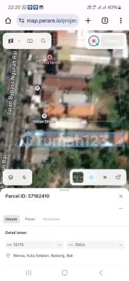 Dijual Tanah Komersial Di Jalan Raya Bypass Nusa Dua Luas 700m² Dimensi: lebar 10 x 68-70m Hadap Selatan Akses jalan 20m Zona Perdagangan dan Jasa Dekat Bank, Apotik, Klinik, Resto, BTDC, Tol, dll Harga Global Rp. 10M (= Rp.1,43 Milyar/are)