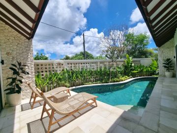 Villa Baru Bergaya Mediteranian Tropis 10 menit ke Pantai Pandawa Bali Lokasi di Jalan Gayang Sari,Kutuh - Bali - 10 menit / 5 km ke Pantai Pandawa Details : - Luas tanah 203 m2 - Luas bangunan 89 m2 - Bangunan 1 lantai - 2 kamar tidur - 2 kamar mandi - 1 toilet tamu - Kolam renang - Ruang keluarga - Dapur - Halaman luas - Perabot lengkap - Sumber air PDAM - Listrik 7700 watt - Hadap barat & utara - Posisi hook / pojok dapat 2 akses jalan - Akses jalan 5 meter aspal - Surat Hak Milik / SHM - IMB / SLF proses pengurusan doi Bangunan baru selesai bulan desember 2025 Harga Rp.4.500.000.xxx - fine negotiable