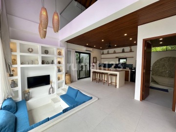 Price: IDR 2,700.000.xxx Location: Padang Padang Land Size: 104 m² Building Size: 90 m² Bedrooms: 1 (mezzanine, ensuite) Bathrooms: 2 Kitchen: Yes Living Room: Yes Pool: Plunge pool Workspace: Office desk Parking: Bike parking Zoning: Holtikultura P2 Permit: SLF ready Access: 3-meter road Ownership: Leasehold - 22 years (extendable) ********