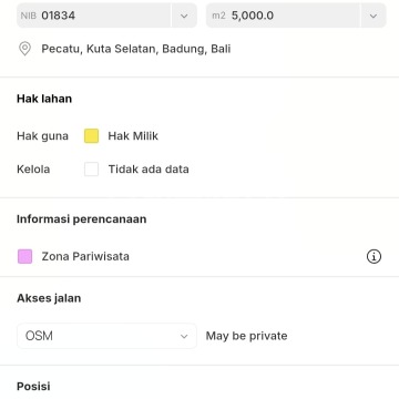 *FOR SALE : CLIFF FRONT PECATU* _Location : Jl BelimBing Sari Pecatu Beside Savaya Club_ Detail : - Land size : 5000 m² / 50 are - Tourism Zone Pink - Certificate SHM - Full Ocean View - Access road 6 meters - Good for hotel,villa complex, apartment,etc - Access electricity,water,internet available Price : IDR 2,5 Miliar / are / 100 m²