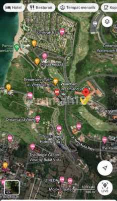 Dijual tanah di pecatu graha •luas 1810 m2 •golf front •dapet view laut sebagian dari lantai 2 •kanan kiri sudah villa2 mewah •100 meter dari jumaerah resort •sebrang wyndham hotel dreamland .Nempel dg new Kuta golf hotel •one gate sistem . Sdh ada ijin prinsip nya •akses aspal dan paving bagus •Harga : 900 juta/ are nego Direct owner Ajk