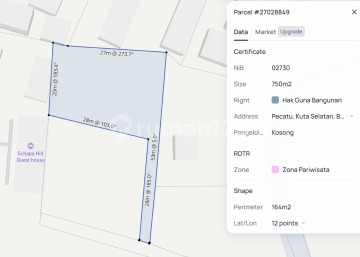 Dijual tanah lokasi labuan sait pecatu uluwatu kuta selatan Luas tanah 1500 m² / 15 are Ijin Tata Ruang akomodasi wisata Lebar jalan 4 meter SHGB harga 1.760 miliar per are Salam Closing ReMap Bali