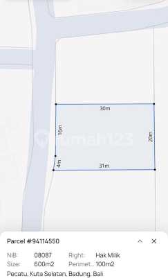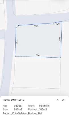 Dijual tanah lokasi pecatu kuta selatan badung bali Luas tanah 1240 m² / 12.4 are Ijin Tata Ruang pemukiman Lebar jalan 5 meter SHM harga 600 juta per are Salam Closing ReMap Bali