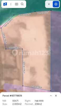 Land size 2000m²/20are Tourism zone Access road 5 meter Legality SHM Price idr : 2,2M/are