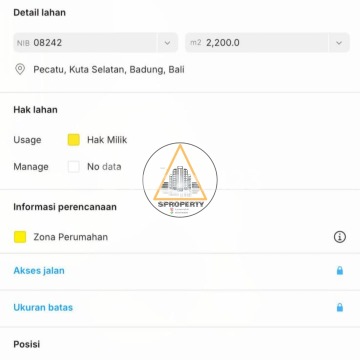 LAND FOR SALE OCEAN VIEW, AIRPORT VIEW, VOLCANOES Gg. KUNYIT Jln. RAYA ULUWATU PECATU Detail : - Land size : 2.200 m² / 22 are - Zone Yellow Residential - SHM - High land contour - Access road 5 meters - Access Electricity, water, internet available - Many villa surrounding - Keep quiet location, Suitable for villa development. Price : IDR 650 Million / Are / 100 m²