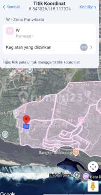 Ocean view Land near Clift Beach and Bulgary Resort - Land Size 3650m²/36,5are - Tourism Zone / Pink Zone - Acces road 4,5meter - Legality 2 SHM - Surroinding villa complex and resort Price IDR : 23jt/are/years Min Lease 25-30years And Possible to Extension ********