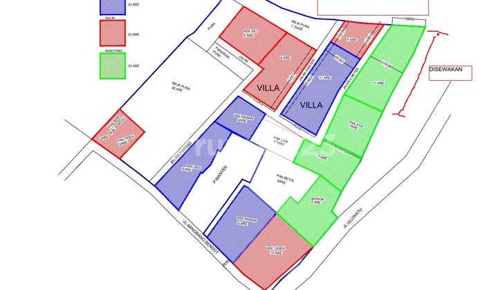 *Land Lease Specification* *Location:* Uluwatu - Pecatu, Bali, Indonesia *Land Area:* 1,200 sqm (0.12 hectares) *Lease Period:* 25 years + 25 years extension option *Lease Type:* Hak Guna Bangunan (HGB) - Building Rights - Prime location in Uluwatu - Pecatu, a popular tourist destination - Surrounded by numerous villas and resorts - Scenic views of the Indian Ocean and surrounding landscape - Easy access to popular beaches, restaurants, and attractions - Suitable for villa, resort, or other tourism-related development *Terms and Conditions:* - Lease period: 25 years, with an option to extend for an additional 25 years - Lease fee: negotiable - Payment terms: upfront or annual payments - Use of land: restricted to villa, resort, or other tourism-related development *Additional Information:* - Land title: HGB (Building Rights) - Zoning: tourism zone - Infrastructure: electricity, water, and internet available in the area - Local regulations: comply with Indonesian laws and regulations This land lease opportunity offers a unique chance to develop a high-end villa or resort in one of Bali's most sought-after locations. Contact us for more information and to schedule a viewing. @ price IDR 16 Mill/are/yrs