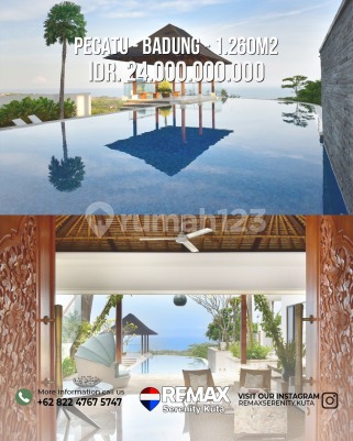 Land Size Freehold 1260 sqm Building size 2 floors 780 sqm View indian ocean semi cliff Electricity 23.000 watt Near Omnia club Near Alila Uluwatu 35 Minutes to the airport Built from 2014 till 2016 by famous architect Putu Edy Semara 4 Suites Bedrooms with Ocean View balcony. - Reading Room -Guest Kitchen - Living Room - Store room - 2 staff room - Staff Kitchen - Staff Bathroom - Storage Cover car garage 2 cars and 3 Carports Infinity pool Gazebo baliness