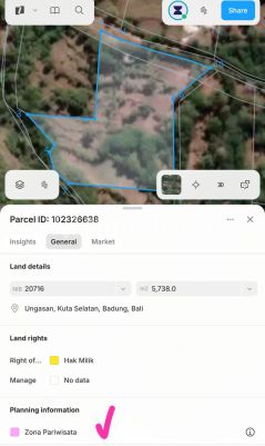 Disewakan Tanah Lokasi Di Ungasan Jalan Blimbing Sari Pecatu , 2 Menit Ke Sunday Beach Club , Karma Kandara , Ocean View Di Lantai 2 Luas Tanah 5738m2 Sertifikat Hak Milik Zona / ITR Pariwisata Akses Jalan 4 Meter 345 Harga : 23 Jta / Are / Thn / Nett NB : Masa Sewa 30 Thn Plus 20 thn