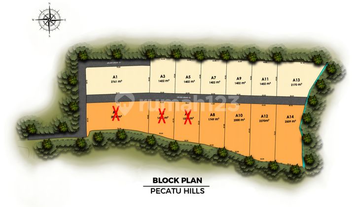 5 menit ke Savaya Day Club 8 menut ke New Kuta Golf Bali 12 menit ke Dreamland dan El Kabron Day Club 14 menit ke Pantai Padang Padang 15 menit ke Pantai Melasti dan White Rock Beach Club Luas Tanah mulai 1402 m2 - 2509 m2 14 Plot Akses lebar 10meter Hadap Utara atau Selatan SHM Zona Perumahan Cocok Untuk Villa Harga Jual Rp 650Juta /are NETT (Khusus 6 kavling pertama).