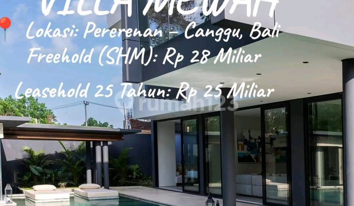 DIJUAL / DISEWAKAN VILLA MEWAH - PERERENAN, CANGGU BALI Villa mewah dengan desain modern dan fasilitas lengkap di kawasan premium Pantai Pererenan, Canggu. Dilengkapi kolam renang besar dengan sunken daybed dan luxurious sunken lounge yang membuat suasana bersantai dan berenang semakin eksklusif. Villa ini juga memiliki gym room dan massage room untuk relaksasi setelah beraktivitas seharian. Area hiburan juga sangat lengkap dengan entertainment room yang dilengkapi pool table dari kayu jati, big screen TV, home bar, snack bar, dan coffee station. Spesifikasi Villa: 5 Bedroom Suite 5 Bathroom Walk-in Closet di setiap kamar Luas Tanah: 655 m² Luas Bangunan: 715 m² Kolam Renang Besar 5 x 14 meter Gym Room Massage Room Entertainment Room Service Quarter + Staff Room & Bathroom Laundry Area Storage Room Harga: Freehold (SHM): Rp 28 Miliar Leasehold 25 Tahun: Rp 25 Miliar Sewa Tahunan: Rp 2,5 Miliar (nego) Sewa Bulanan: Rp 270 Juta PROMO KHUSUS: Sewa 3 Bulan GRATIS 1 Bulan Include Fasilitas: WiFi (kapasitas rumah tangga) Cleaning service 3x seminggu Pool maintenance 2x seminggu Gardener 1x seminggu Garbage fee Banjar fee Ganti sprei 1x seminggu Lokasi: Pererenan - Canggu, Bali Info & Viewing: WA: 0813xxxxxxxx Listing ID: Saidjoni140326