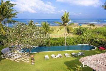 Freehold & Leasehold | Approx. 100 Meters of Direct Beach Frontage | Fully Licensed This extraordinary estate, located on one of Bali's largest remaining beachfront plots along the booming southwest coast, represents a unique legacy acquisition that offers both irreplaceable land value and significant growth potential. Nestled in the heart of Pererenan, just minutes from Echo Beach and Batu Bolong, this rare property combines expansive space, traditional Balinese architecture, and a front-row position overlooking the Indian Ocean. The total land area is 11,700 square meters, which includes 5,500 square meters of freehold land held under HGB via a foreign-owned PT PMA (convertible to Hak Milik) and 6,200 square meters of leasehold land from the local village, with 14 years remaining and guaranteed extension rights. The built area spans approximately 850 square meters, intelligently divided across multiple pavilions, and includes a 6-bedroom primary residence with an open-plan living and dining area, a media lounge, and a chef's kitchen, as well as a 500-square-meter secondary villa, ideal for guests, private rentals, or wellness functions. Additionally, two antique Joglo structures have been relocated and restored with exquisite detailing, and a secluded yoga shala is nestled among mature gardens for peaceful sessions and events. The estate also offers spacious lawns for gatherings, a shared tennis court, a backup generator, secure parking, and dedicated staff quarters. Year Built: 1999 Freehold: 5,500 sqm Leasehold: 6,200 sqm Total Land Area: 11,700 square meters Price: IDR 175 Billion.
