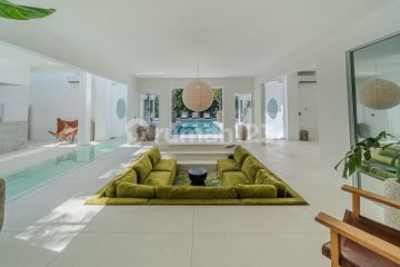 Step into an oasis of sophistication and tranquility at this luxury 4-bedroom villa, perfectly situated in the highly sought-after area of Pererenan, Canggu, just moments away from the pristine Pererenan Beach. Key Features & Highlights: Prime Beachside Location: Enjoy the best of Bali living with the beach, known for its beautiful sunsets and surf breaks, only a short stroll or drive away (often less than 1km). The villa offers swift access to the tranquil seaside while being close to the trendy heart of Canggu. Luxurious and Modern Design: This villa is a masterpiece of contemporary tropical architecture, blending sleek lines and high-end finishes with natural elements like recycled teak wood and lush greenery. The design emphasizes elegance, comfort, and a seamless connection to the Balinese environment. Spacious Living Areas: The heart of the villa is a generous living space—often enclosed with floor-to-ceiling glass doors for air-conditioned comfort, or designed to open completely to the pool deck—featuring stylish modern furniture, high ceilings, and stunning views of the garden and pool. This area typically includes a comfortable lounge, a large dining table, and a dedicated indoor/outdoor gathering space. Four Private En-Suite Bedrooms: Each of the four bedrooms serves as a private sanctuary, complete with a king-size bed, premium linens, air conditioning, and a luxurious en-suite bathroom. Many rooms boast private features like a balcony, outdoor patio, or even a semi-outdoor bathtub, ensuring ultimate privacy and relaxation for all guests. Private Outdoor Haven: Step outside to your private paradise, centered around an expansive, sparkling swimming pool, surrounded by a stylish wooden deck, comfortable sun loungers, and lush tropical landscaping. An outdoor seating area or dining space, sometimes featuring a BBQ, is perfect for alfresco dining and enjoying the tropical climate. Gourmet Kitchen: A fully equipped, state-of-the-art kitchen, often featuring a cooking island, modern appliances (including a wine chiller in some designs), and ample space, caters to all your culinary needs. Private chef services can often be arranged for a truly in