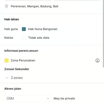 *TANAH DIJUAL Jln. Jantuk Angsa PERERENAN* _Lokasi strategis area Pariwisata dekat dengan Jalan raya utama Canggu - Tanah lot_ - Luas tanah : 1.265 m² - Lebar depan : 21 meter - Hadap timur - ITR Kuning (Permukiman) - Kontur tanah datar siap bangun - Akses jalan 6 meter hotmix - SHGB (PT) - Lingkungan villa - villa mewah komersil - Hanya 10 menit berkendara menuju pantai Pererenan Harga : Rp 1,4 miliar / are / 100 m²