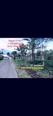 Tanah dijual ( Freehold ) di Desa Tiyingan , Semanik , Plaga . BALI . 2 jam ( 2 hours from ) dari Airport Ngurah Rai , Denpasar , Bali . Iklim (Cuaca ) nya Dingin , jam 12'⁰⁰ siang seperti jam 7'⁰⁰ pagi . Suitable for PLANTATION & PIG FARMS Cocok untuk Peternakan dan Perkebunan Kopi & Jeruk . Luas tanah : 17 Hektar =1700 are = 170.000 M² (Sqm) Tanah yg datar/rata = +/_ 5 Hektar Ada Sungai dan ada Mata air khusus ( bukan Sungai ) Harga : Rp 50 juta/are ( NEGO ) ( Rp 5 M / Ha )