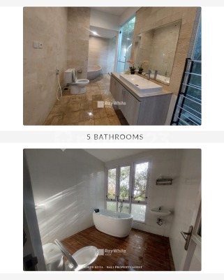 Property Details: Land Area: 356 m² Building Area: 156 m² Bedrooms: 5 Bathrooms: 5 en-suite + 2 additional Year Built: 2020 Electrical Capacity: 10,600 Watts Facilities: Swimming Pool Fully Equipped Kitchen Amenities Iron Smart TV Bathtub Air Conditioning Wi-Fi Living Room Parking Space Kettle Included Services: Housekeeping Pool Maintenance Garden Maintenance Internet Banjar Fees Trash Collection PDAM (Water Supply) Rental Price: IDR 665,500,000 per year