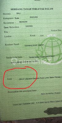 Dijual tanah di area sading Dekat puspem Badung Luas 1.85 are Lebar depan 15 m Shm Itr kuning Posisih hook Aspek pemukiman Cocok untuk kos2 rumah gudang dll Akses jalan 4 m *Harga 425 jt/are* DO ayu manik