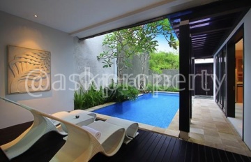 @ Luas Tanah: 153 m2 @ Luas Bangunan: 105 m2 @ Spesifikasi: • 1 master bedroom • 2 bathrooms • Private Swimming Pool • Fully Furnished • Living room • Kitchen • SHM & IMB (Freehold) @ Cocok untuk disewakan dan investasi @ Harga: Rp. 3,000,000,000