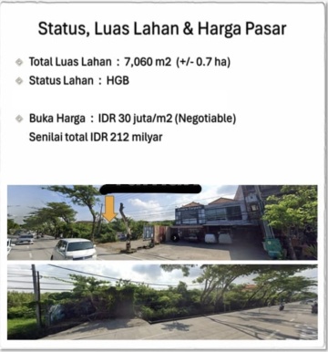 Dijual Tanah lokasi strategis pinggir jalan raya Sunsetroad Seminyak Bali Luas tanah 7060 m2 Harga 3 M per are nego Status Lahan HGB Total 212 Milyar Dekat dengan pusat perbelanjaan, tempat wisata, toko oleh oleh, pertokoan, resto, cafe,Seminyak , dekat dengan Pantai Seminyak segera Hubungi kami