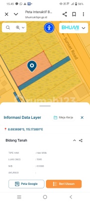 Dikontrakan tanah di Raya Sunset Road Barat, jarak dari KFC ke selatan 45 mtr. Luas 24,20 are, Lebar 27,5 mtr x 88 mtr OkHarga 35jt/are/thn Minimal sewa 25 th