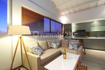 Perched atop a prestigious building in Seminyak, this exquisite one-bedroom penthouse epitomizes luxury living. Boasting a private pool and a stunning beach view, the rooftop terrace is a breathtaking space for relaxation and entertainment. The open-plan layout seamlessly blends indoor and outdoor living, with floor-to-ceiling windows flooding the space with natural light. The kitchen is a chef's dream, equipped with high-end appliances and sleek finishes. The bedroom is a tranquil haven, offering sweeping views and a luxurious en-suite bathroom. With a spacious rooftop deck, residents can savor panoramic vistas of the ocean and cityscape. This penthouse offers an unparalleled lifestyle, combining elegance, comfort, and convenience in one of Bali's most coveted locations.