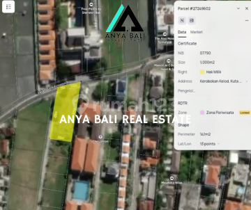 Dijual Tanah 10 Are lokasi strategis dan premium pinggir jalan utama di Seminyak Bali Lokasi : Jl. Cendrawasih Petitenget Seminyak Lokasi tanah bertepatan didepan Hotel Four Point by Sheraton Seminyak. Lingkungan sekitar hotel,komplek villa dan private villa Jalan kaki ke pantai hanya 500 meter saja Hanya 10 menit ke pusat Restaurant terkenal di seminyak dan Hotel Bintang 5 W hotel, Potato Head Details : . Luas tanah 1000 M2 (10 Are) . Ukuran dimensi 25 x 40 meter . IMB 2020 . ITR Akomodasi Pariwisata . Bonus gambar untuk Restaurant dan Luxury villa . Legalitas SHM . Posisi Tanah Hook dapat 2 akses jalan (Akses jalan utama lebar 7 meter dan paving 3,5 meter) Harga IDR 2,3 Miliar/Are (23 Jt/M2) Global IDR 23 Miliar Anya Bali Real Estate 0812xxxxxxxx