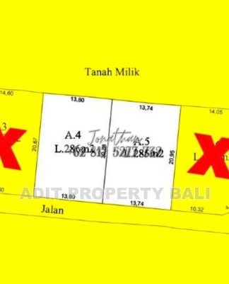 Dijual tanah kavling berlokasi di kawasan Bidadari, Seminyak, Kuta Utara, Badung, Bali. Lingkungan sekitar merupakan area villa dan hotel dengan akses sangat strategis. Lokasi dekat dengan Aleva Villa, Hotel Dafam Savvoya, Fave Hotel, dan Warung Pak Malen. Jarak hanya sekitar 400 meter ke Jalan Sunset Road dan sekitar 200 meter ke Jalan Mertanadi. Tersisa 2 kavling dengan ukuran ideal, cocok untuk pembangunan villa pribadi maupun investasi jangka menengah. Detail kavling Kavling 1 luas 286 m2 Kavling 2 luas 285 m2 Lebar tanah 13,7 meter Spesifikasi Lingkungan villa dan hotel Akses jalan 4 meter Hadap selatan Legalitas dan zoning SHM ITR perumahan Harga Rp 1,4 Miliar per are
