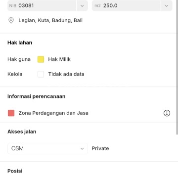 DIJUAL TANAH LOKASI NAKULA SEMINYAK Lokasi strategis di seminyak / Kuta - Bali * Luas tanah : 2,5 are / 250 m² * Lebar depan : 8 meter * Hadap selatan * ITR Perdagangan & Jasa * Kontur tanah datar siap bangun * Akses jalan lebar 9 meter * SHM * Lingkungan villa - villa mewah * Hanya 10 menit berkendara ke Pantai Harga : Rp 1,7 miliar / are / 100 m²