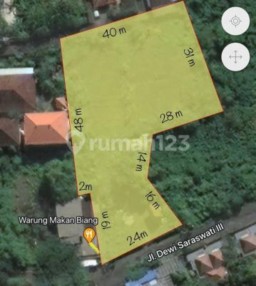 Dijual tanah utama Dewi Saraswati 3 Seminyak Badung-Bali Lingkungan Villa Luas tanga 2045m2 Lebar 23 meter Hadap selatan Sudah tembok keliling 3 Shm ( 1685 , 200 & 160m2 ) ITR Campuran Akses jalan 8 meter 66 Harga 2 Milyar / are