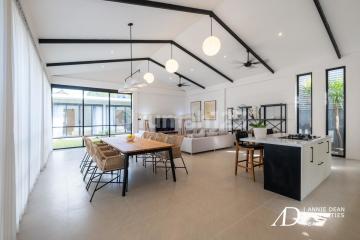 Prime Seminyak | Brand-New | Fully Furnished, Ready to Move In Located in the heart of Seminyak, this brand-new modern white villa offers a fresh and stylish retreat just minutes from Bali's most popular lifestyle hubs. Combining contemporary architecture with spacious outdoor living, the property is ideal for families, long-term residents, or tenants seeking comfort and convenience in one of Bali's most sought-after neighborhoods. Set on 800 square meters of land, the villa features 250 square meters of interior space on a single level, with a functional open layout that includes four bedrooms, four bathrooms, a guest powder room, a generous living area, dining space, and a sleek modern kitchen. It also includes a dedicated storage room, a large landscaped garden, and a spacious private swimming pool. The parking area fits two cars comfortably, and the entire home is finished in a clean, elegant white palette that enhances its modern aesthetic. Just completed, this turnkey property is ready for immediate occupancy. Price: IDR 850,000,000 / Year.