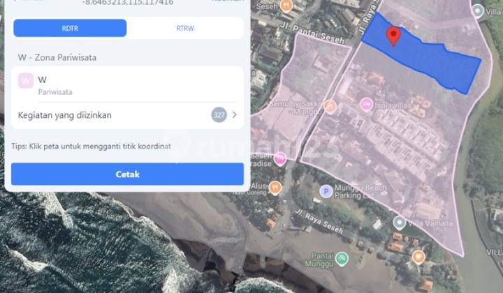 LAND FOR SALE/RENT ON SESEH BEACH ROAD ✅ DETAILS: - Land area 4.000 m2 atau 40 are - ITR/Tourism Zone - Only 150 meters from Seseh Beach - Freehold - Frontage width 35 meters - Suitable for hotels, villas, restaurants, cafes, sports centers, etc. ✅ Selling Price: 1.7 billion rupiah/are ✅ Rental Price: 30 million rupiah/are/year ********