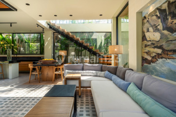 Dijual – Villa Baru 3 Kamar Tidur Dekat Pantai Seseh, Mengwi Terletak di lingkungan yang tenang dan sangat baik, dikelilingi oleh komunitas internasional, villa baru ini menawarkan perpaduan sempurna antara desain modern dan sentuhan gaya Bali yang menawan. Bangunan utama terdiri dari dua lantai, di mana lantai dasar terdapat ruang tamu yang luas dan dapur bergaya modern. Tangga melayang menghubungkan ke kamar tidur di lantai atas, menambah kesan elegan pada desain arsitektur. Penggunaan kaca besar di berbagai sisi bangunan membuat cahaya alami masuk dengan maksimal, menciptakan suasana terang dan nyaman di seluruh ruangan. Interiornya memadukan unsur modern dan tradisional Bali yang menghadirkan nuansa hangat serta menenangkan. Lokasi sangat strategis — cukup berjalan kaki menuju pantai dan hanya 15 menit berkendara ke Pantai Pererenan. Sangat ideal untuk tempat tinggal maupun investasi. Detail Properti: • Status: Leasehold 20 tahun • Luas Tanah: 325 m² • Luas Bangunan: 280 m² • Kamar Tidur: 3 • Kamar Mandi: 3 • Tahun Dibangun: 2024 • Kolam Renang Pribadi • Fully Furnished Harga: USD 430.000
